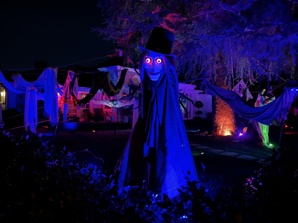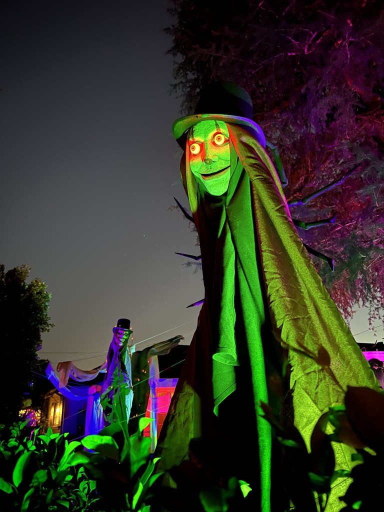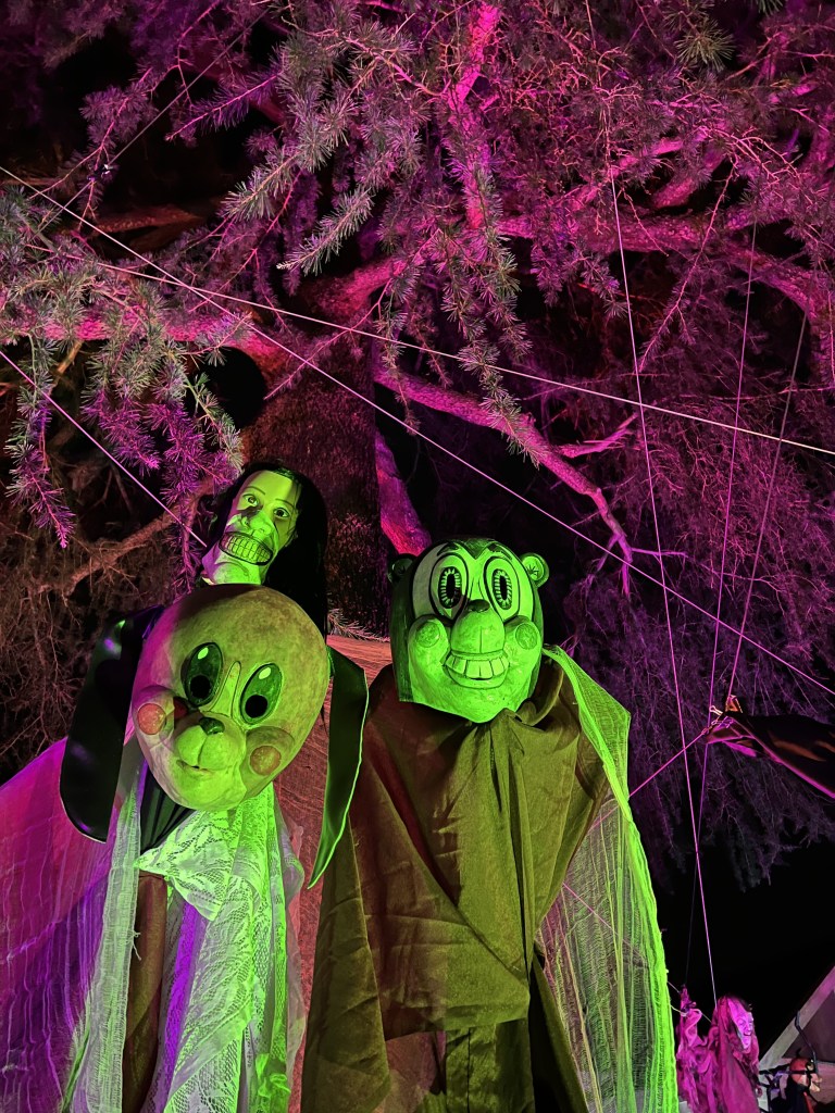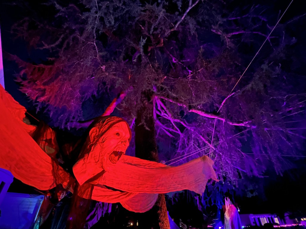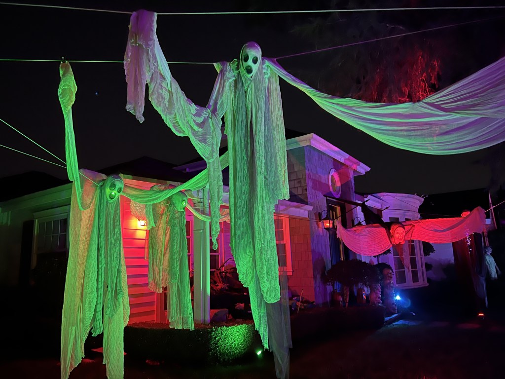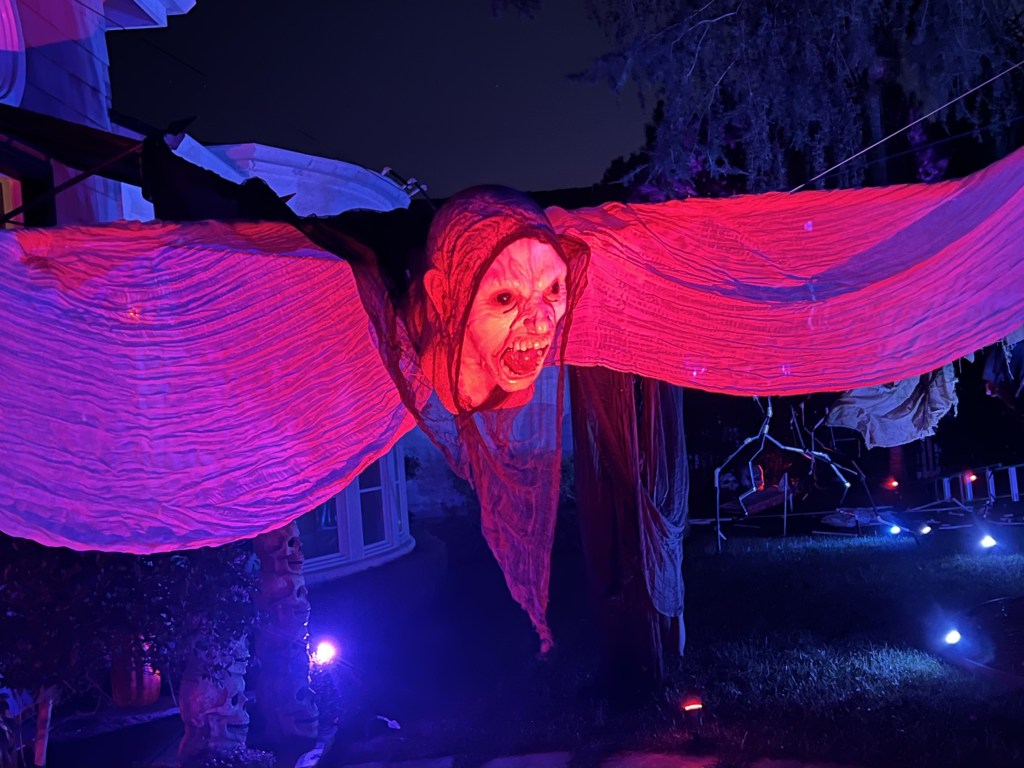 This year’s creepy yard’s new idea was less about creature innovation and more about improved presentation and easier maintenance. I strung up a bunch of nylon ropes high above to serve as a kind of scaffolding to hang creatures, as opposed to planting them all in the ground. This not only raised the sightline of the yard for those viewing from the street, but it also allowed lighter creatures that utilized less PVC and fabric. The idea was also to be less vulnerable to wind and water, which along with gravity I’m always battling with what I’ve set up.